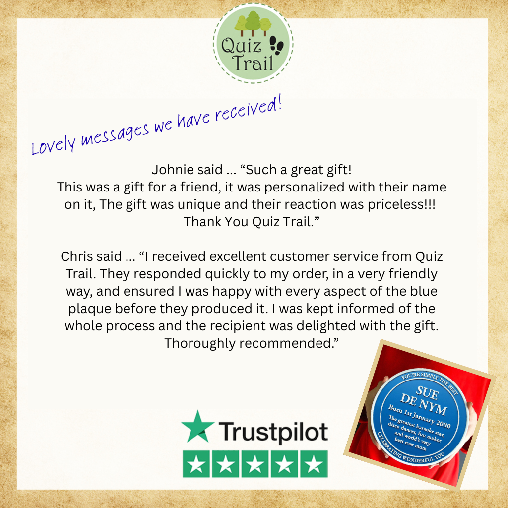Should you have any questions about your order, please contact us at info@quiztrail.co.uk