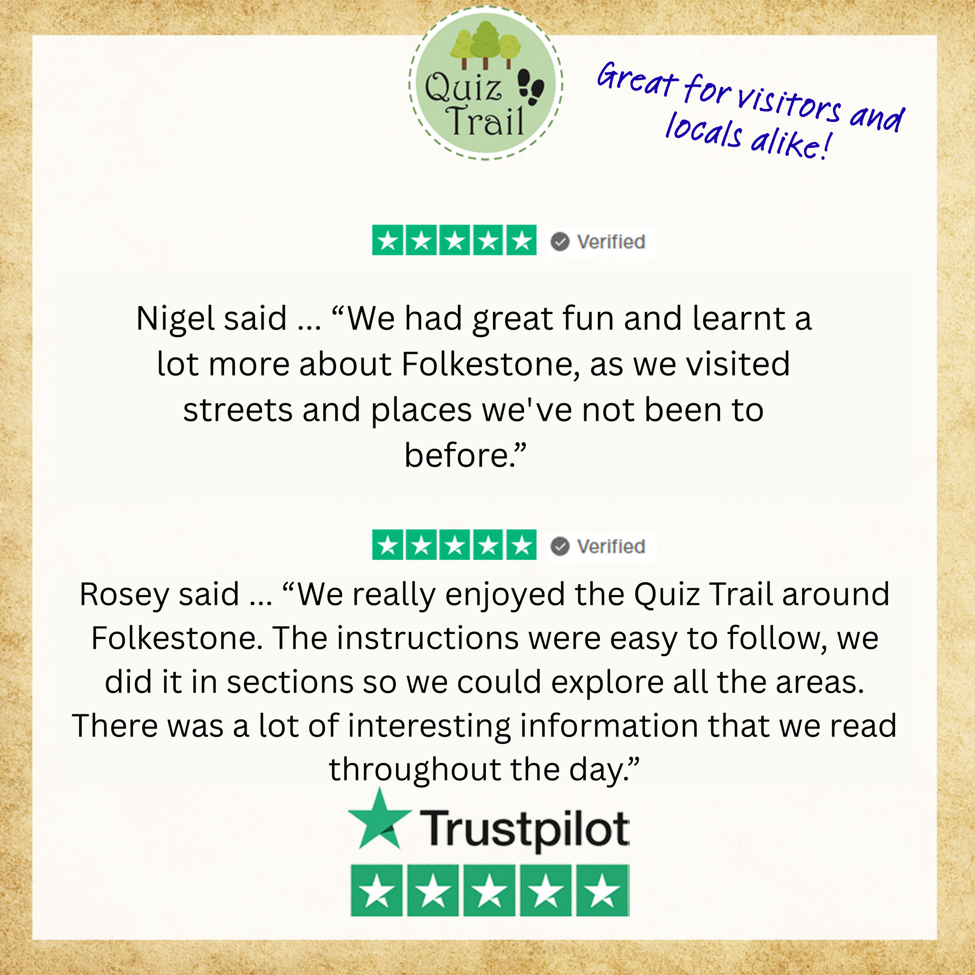 "I have been living in the Folkestone area since the 90s and your Folkestone Quiz Trail has taught me lots that I didn't even know or realise, so thank you. The booklet was easy to follow and I would definitely recommend this to others!" - Tracey